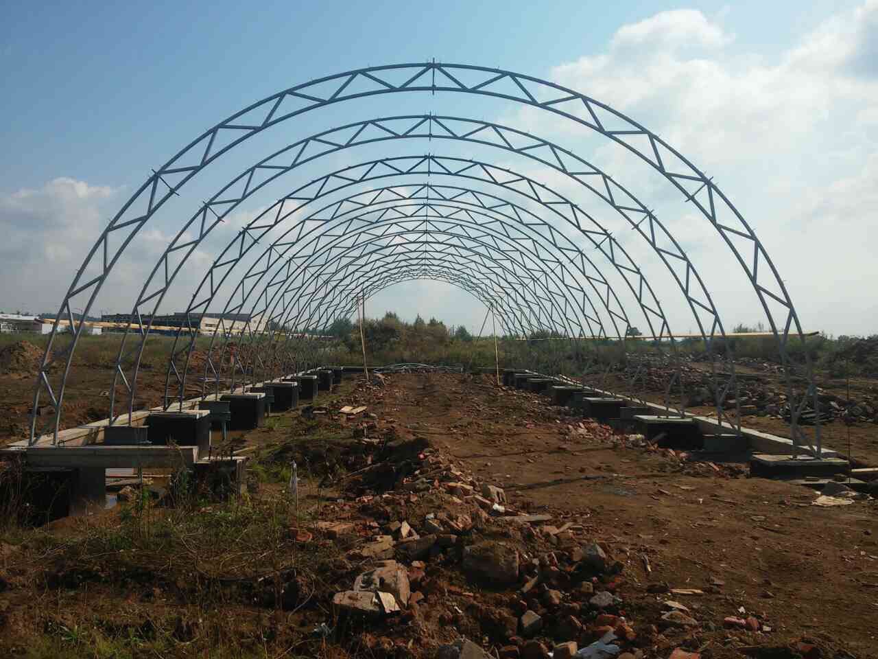 - Строительство трех арочных каркасных ангаров 12*54
